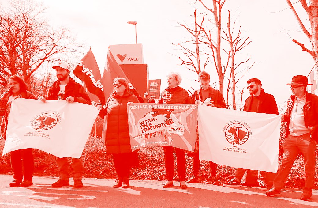 Vale est le premier producteur mondial de minerai de fer. Malgré ses énormes profits, ses activités ont entraîné des crimes sociaux et environnementaux dont l’entreprise n’assume pas la responsabilité. Pour preuve, en 2015, le barrage de déchets toxiques de Samarco (appartenant aux transnationales Vale et BHP) s’est rompu dans la municipalité de Mariana (État de Minas Gerais, au Brésil), tuant 19 personnes et onze tonnes de poissons dans le bassin du Fleuve Doce. De plus, près d’un million d’habitant-e-s de la région consomment de l’eau contaminée. Les personnes touchées n’ont pas reçu de réparation complète.